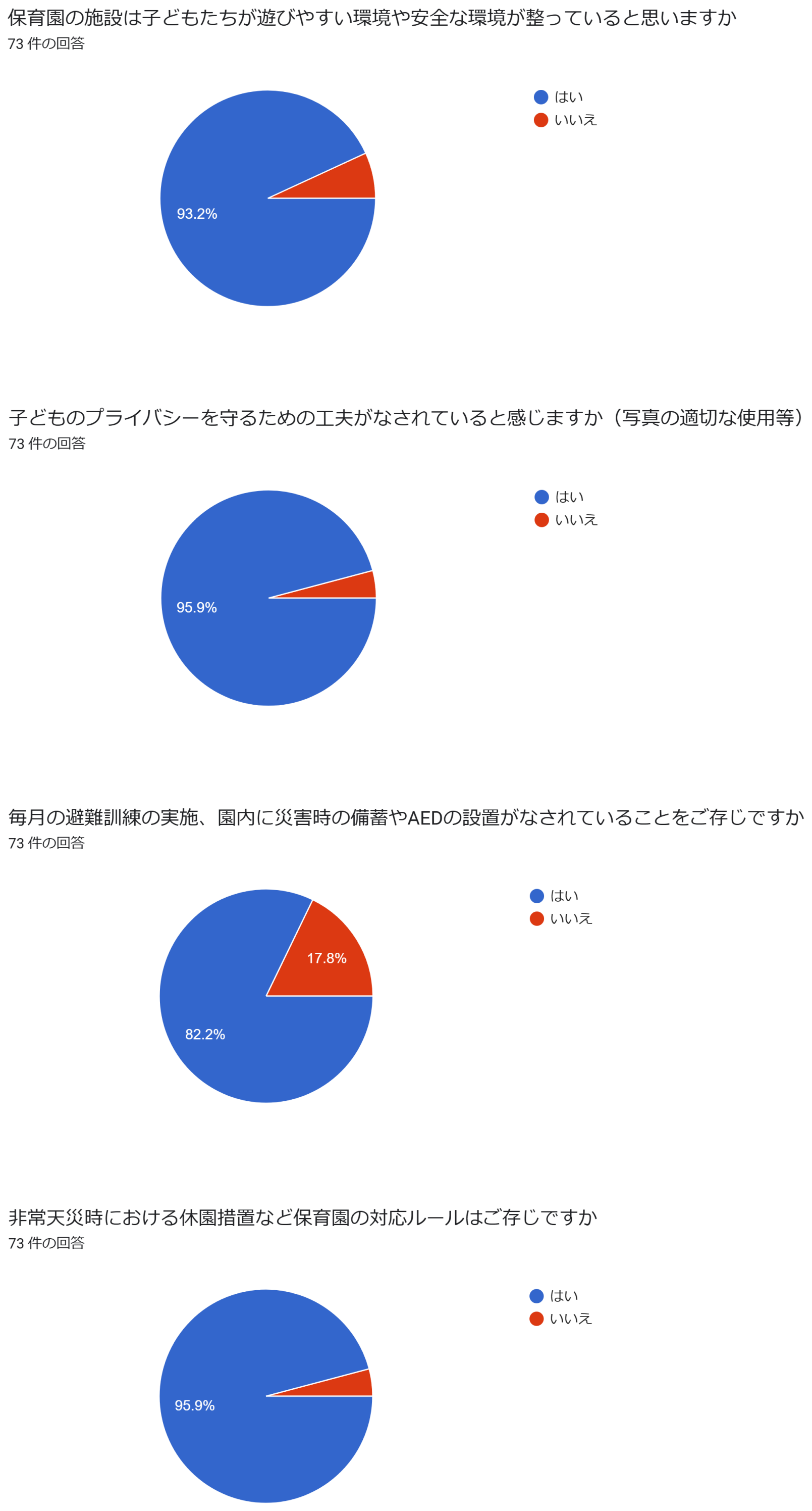 みなさまのご意見を真撃に受け止め、今後も保育の向上に努めてまいります。